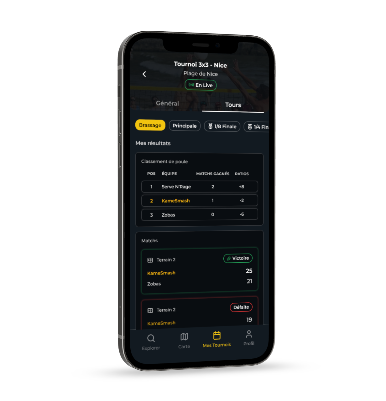 Vos joueurs retrouvent leurs résultats en direct, tout au long du tournoi. Les données restent accessibles même après la fin de l’événement.